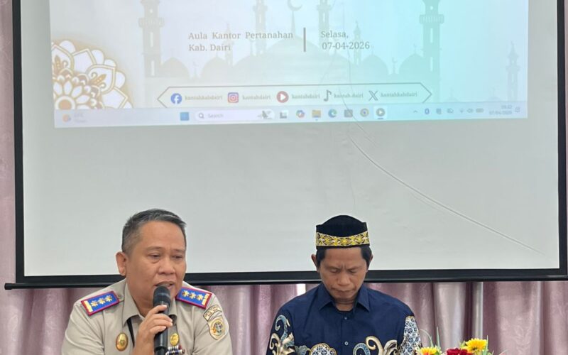 DAIRI /vokalpublika.com Kantor Pertanahan Kabupaten Dairi kembali menunjukkan komitmennya dalam membangun sumber daya manusia yang unggul melalui penguatan aspek mental dan spiritual. Hal ini diwujudkan dengan pelaksanaan kegiatan pengajian yang diikuti seluruh jajaran pegawai, berlangsung khidmat dan penuh makna. Kegiatan pengajian tersebut dipimpin oleh Nurkhalis, S.Si, dan secara resmi dibuka oleh Kepala Kantor Pertanahan Kabupaten …