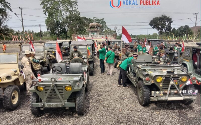 120 anggota GP Ansor Lampung Timur Ikuti Kirab Merah Putih, Sebanyak 27 Jeep Willys Keliling Lampung Timur