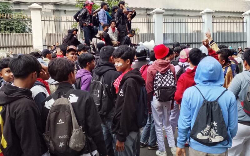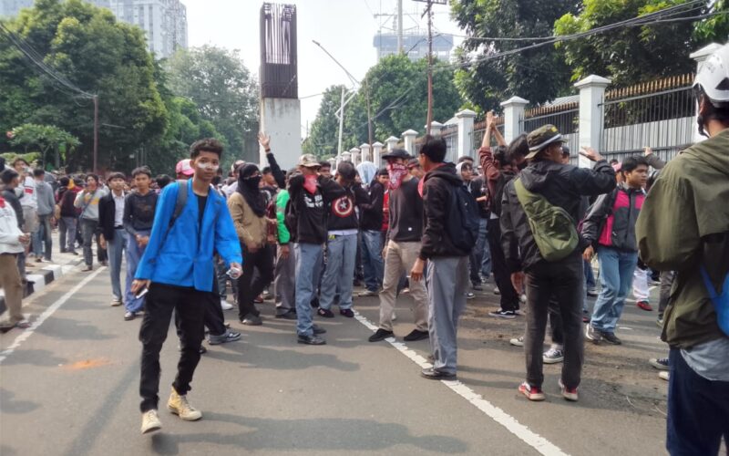 Massa yang Tercerai-berai akhirnya didorong aparat ke arah Gelora Bung Karno (GBK) disela-sela aksi timpuk-menimpuk. Beberapa saat kemudian, datang 300 massa mahasiswa dari Universitas Indraprasta PGRI.