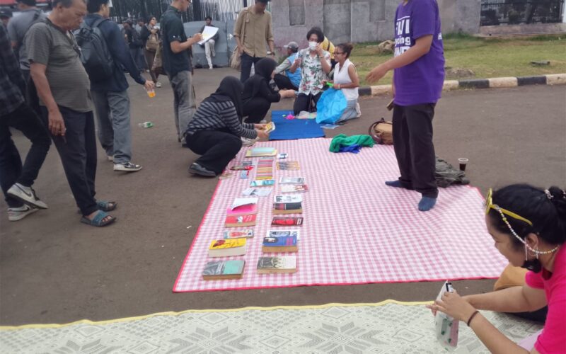 Selain menyampaikan pendapat yang mengatakan bahwa anggota DPR RI tidak aspiratif, BEM UI juga membuka lapak baca di lokasi aksi. “Ini lapak baca yang disediakan untuk siapa saja yang ingin membaca buku yang dijual di toko buku,” terang Albi mahasiswa UI yang hadir.