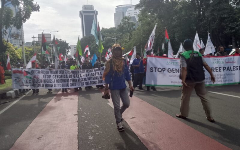 Aksi Sejuta Buruh Dilakukan di Jalan Merdeka Selatan, Buruh Siap Berperang Ke Palestina