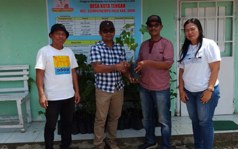 Bibit tersebut diserahkan langsung oleh pengurus AMPEDA kepada Kepala Desa Kuta Tengah, Marsana Simamora, sebagai bagian dari dukungan terhadap program Bupati Dairi dalam gerakan penanaman satu juta pohon yang bertujuan memperkuat konservasi lingkungan sekaligus meningkatkan nilai ekonomi masyarakat melalui tanaman produktif.
