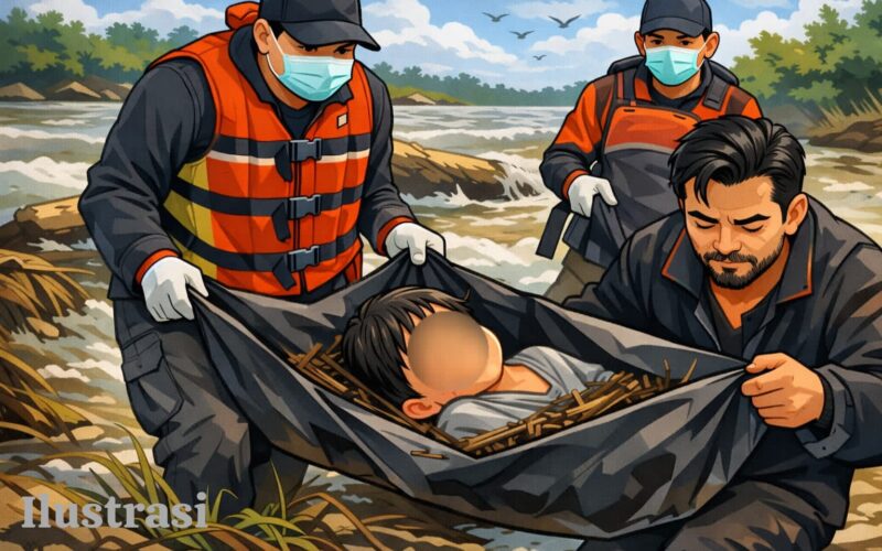 Keterangan yang dihimpun petugas menyebutkan, Akmal dan ibunya menyeberangi sungai secara bersamaan. Namun ketika berada di bagian tengah aliran, arus mendadak menguat dan sulit dikendalikan.