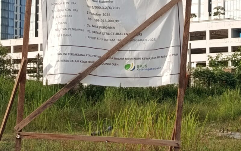 Batam, vokalpublika.com — Sebuah papan informasi proyek di kawasan Simpang Mitra habibi Batam Kota menjadi sorotan warga. Papan tersebut tampak asal-asalan, menggunakan spanduk tipis yang kusut, miring, dan sulit dibaca, sehingga menimbulkan pertanyaan terkait transparansi penggunaan anggaran.
