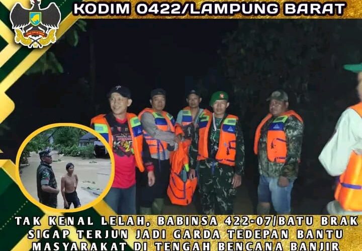 Babinsa 422-07/Batu Brak Sigap Terjun Jadi Garda Terdepan Bantu Masyarakat di Tengah Bencana banjir
