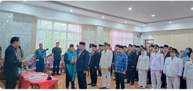 Kaur, Vokalpublika – Bupati Kaur Gusril Pausi, S.Sos., M.AP secara resmi melantik dan mengambil sumpah jabatan Sekretaris Daerah (Sekda) Kabupaten Kaur Dr. Nasrur Rahman, S.Hut., M.Si bersama 39 pejabat lainnya di lingkungan Pemerintah Kabupaten Kaur, Senin (15/12/2025).