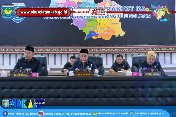 Muaradua – Dewan Perwakilan Rakyat Daerah (DPRD) Kabupaten Ogan Komering Ulu Selatan (OKU Selatan) menggelar Rapat Paripurna dengan agenda Jawaban/Tanggapan Bupati OKU Selatan terhadap Pandangan Umum Fraksi-Fraksi DPRD Kabupaten OKU Selatan, bertempat di Ruang Rapat Paripurna DPRD, Jum’at (19/9/2025).
