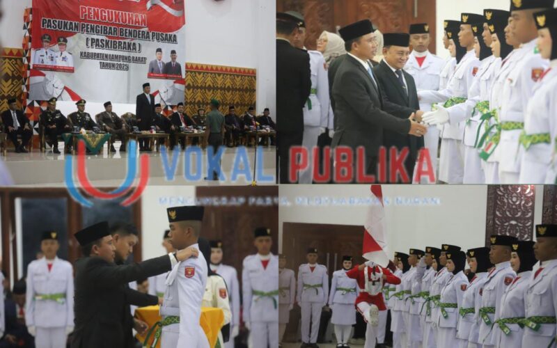 Lampung Barat, vokalpublika.com- Bupati Lampung Barat, Parosil Mabsus, mengukuhkan 50 anggota Pasukan Pengibar Bendera Pusaka (Paskibraka) yang akan bertugas pada upacara peringatan Hari Ulang Tahun (HUT) ke-80 Kemerdekaan Republik Indonesia (RI).