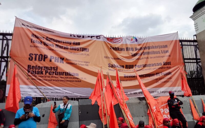 jakarta, vokalpublika.com – Aksi buruh pada 28 Agustus membludak. Massa yang menggeruduk DPR RI membuat orator kian berapi-api menyuarakan tuntutan. Mereka tak hanya menolak sistem outsourcing, tapi juga mendesak pemerintah segera membentuk Satgas Pemutusan Hubungan Kerja (PHK).