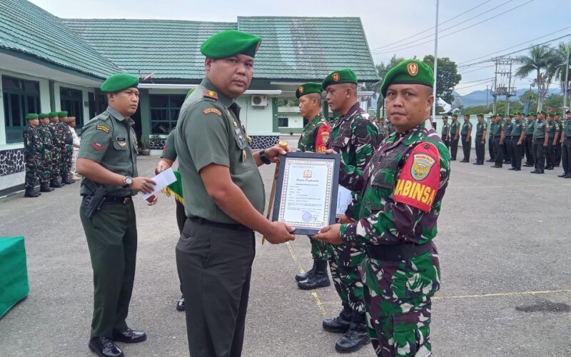 Usai pelaksanaan upacara, Dandim 0417/Kerinci melanjutkan acara dengan menyerahkan piagam penghargaan kepada Babinsa Teladan. Penghargaan ini diberikan sebagai bentuk apresiasi atas dedikasi dan kinerja luar biasa para Babinsa dalam menjalankan tugas pembinaan teritorial di wilayah binaannya masing-masing.