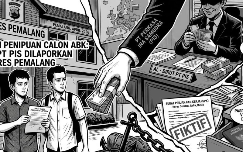 Pemalang, Vokalpublika.com – Direktur Utama PT Perkasa Ina Samudra (PIS) berinisial AL dilaporkan ke Polres Pemalang atas dugaan penipuan dan penggelapan terhadap calon Anak Buah Kapal (ABK). Laporan resmi tersebut dilayangkan pada 18 Maret 2026 oleh dua korban, Zaenal Abidin dan Nurjaman, yang gagal diberangkatkan ke luar negeri.