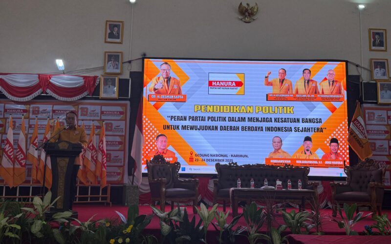 Karimun, vokalpublika.com— Dewan Pimpinan Cabang (DPC) Partai Hati Nurani Rakyat (Hanura) Kabupaten Karimun menggelar kegiatan Pendidikan Politik bertema “Peran Partai Politik dalam Menjaga Kesatuan Bangsa untuk Mewujudkan Daerah Berdaya Indonesia Sejahtera”. Kegiatan ini dilaksanakan selama dua hari, 23–24 Desember 2025, bertempat di Gedung Nasional Kabupaten Karimun.