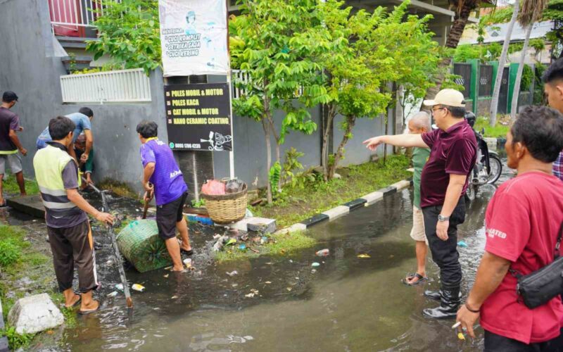 Sejumlah titik drainase di wilayah Kota Probolinggo mendapat perhatian khusus dari Wali Kota dr. Aminuddin, Minggu (18/1) pagi. Yakni, drainase di Jalan Mayjen Panjaitan, Jalan Suyoso, dan sungai di Jalan KH Fadhol. Pasalnya, hujan deras yang mengguyur kota pada Sabtu (17/1) malam menyebabkan genangan air, tumpukan sampah yang meluber ke jalan, serta ambrolnya plengsengan sungai. Bersama tim dari DLH, DPUPR PKP dan BPBD setempat, wali kota melakukan pembersihan serta normalisasi saluran drainase tersebut.