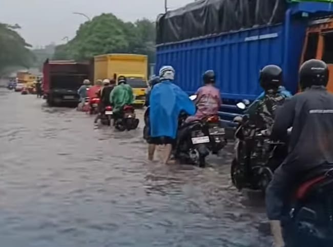 Hujan di Tangerang buat jalan Gatot Subroto, Jati Uwung, Tangerang Banjir