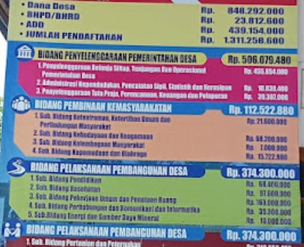 Seorang tokoh masyarakat menyampaikan bahwa terdapat kejanggalan serius dalam penggunaan dana di bidang pembangunan pekerjaan umum dan penataan ruang, yang tercatat memiliki nilai anggaran sebesar Rp163 juta. Namun, hingga saat ini, warga tidak mengetahui proyek apa yang dibiayai dari anggaran tersebut.