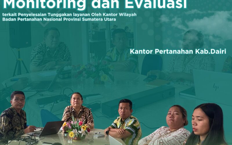Kantor Pertanahan Kabupaten Dairi mengikuti kegiatan Monitoring dan Evaluasi (Monev) mengenai tunggakan pelayanan yang diselenggarakan secara daring melalui aplikasi Zoom Meeting oleh Kantor Wilayah BPN Provinsi Sumatera Utara pada hari ini. Kegiatan Monev dipimpin langsung oleh Kepala Kantor Wilayah BPN Provinsi Sumut, Sri Pranoto, dan diikuti oleh seluruh jajaran Kantah Dairi, termasuk Kepala Kantor Pertanahan Kabupaten Dairi, Daud Wijaya Sitorus, S.P., M.Si., beserta para pejabat pengawas.
