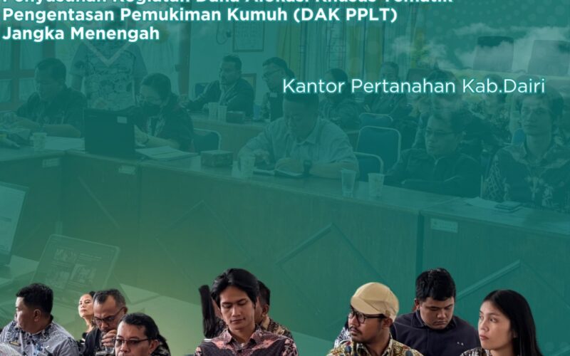 Kantor Pertanahan Kabupaten Dairi turut berpartisipasi dalam Rapat Penyusunan Kegiatan Dana Alokasi Khusus (DAK) Tematik Pengentasan Permukiman Kumuh (PPLT). Kegiatan ini menjadi langkah penting dalam mendukung upaya pemerintah untuk menciptakan lingkungan permukiman yang layak, tertata, dan berkelanjutan bagi masyarakat.