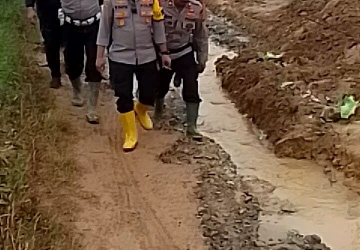 Sesampainya di lokasi dan turun dari Bot, Kapolres dan personel langsung berjalan kaki untuk menempuh lokasi banjir dan tanah longsor, jarak yang ditempuh sekitar 3 kilo meter.