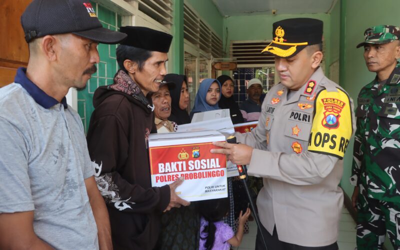Selain melakukan peninjauan, Kapolres juga memberikan bantuan sosial paket sembako guna meringankan beban warga yang terdampak. Adapun sasaran lokasi pemberian bantuan sosial yakni Desa Ranu Agung, Desa Tiris, dan Desa Segaran.