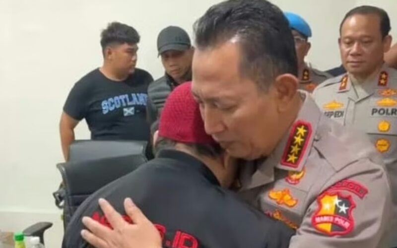 Dikutip dari detiknews.com Pertemuan berlangsung di Rumah Sakit Polri, Jakarta, Jumat (29/8/2025) dini hari. Didampingi Kapolda Metro Jaya Irjen Asep Edi Suheri, Kapolri menemui dua keluarga korban di salah satu ruangan rumah sakit. Dalam momen haru tersebut, Kapolri tampak membungkuk saat bersalaman dengan keluarga korban, sebelum akhirnya memeluk salah satu anggota keluarga yang menangis tersedu.