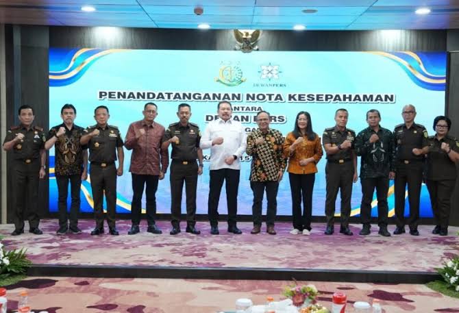 Jakarta, Vokalpublika.com— Kejaksaan Agung Republik Indonesia bersama Dewan Pers menandatangani nota kesepahaman atau Memorandum of Understanding (MoU) sebagai bentuk komitmen memperkuat penegakan hukum dan melindungi kemerdekaan pers. Acara penandatanganan berlangsung di kompleks Kejaksaan Agung, Jakarta Selatan, Selasa (15/7/2025).