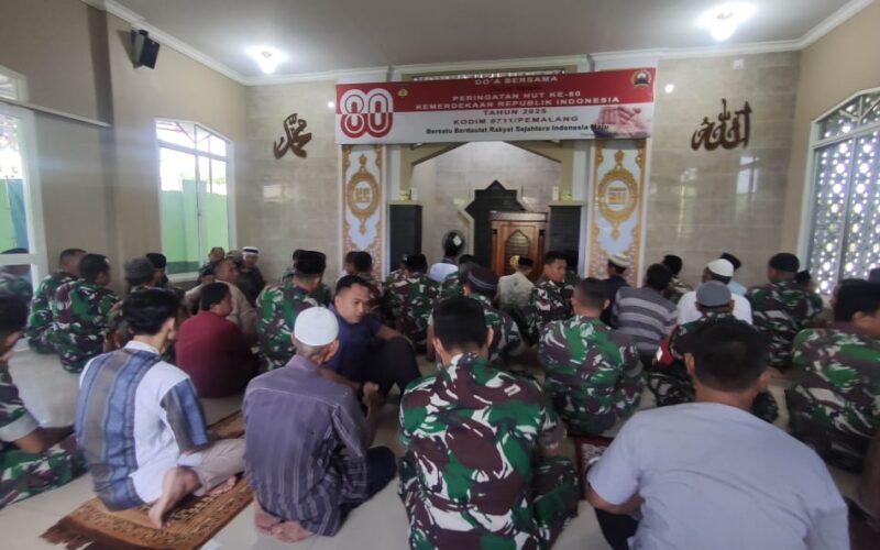 Pemalang Jawa Tengah,vokalpublika.com– Dalam rangka memperingati Hari Ulang Tahun (HUT) ke-80 Kemerdekaan Republik Indonesia tahun 2025, Komando Distrik Militer (Kodim) 0711/Pemalang menggelar doa bersama dengan tema ” Bersatu Berdaulat Rakyat Sejahtera Indonesia Maju”, bertempat di Musholla Al-Ikhlas Kodim Pemalang, Jumat (15/8/25).