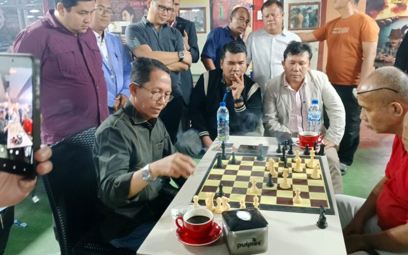 Setiap langkah bidak Amsakar digerakkan dengan fokus, tapi ia tetap santai menyapa peserta dan warga yang mendekat. Momen itu membuat suasana semakin hidup, sekaligus menambah antusiasme peserta lain di turnamen.