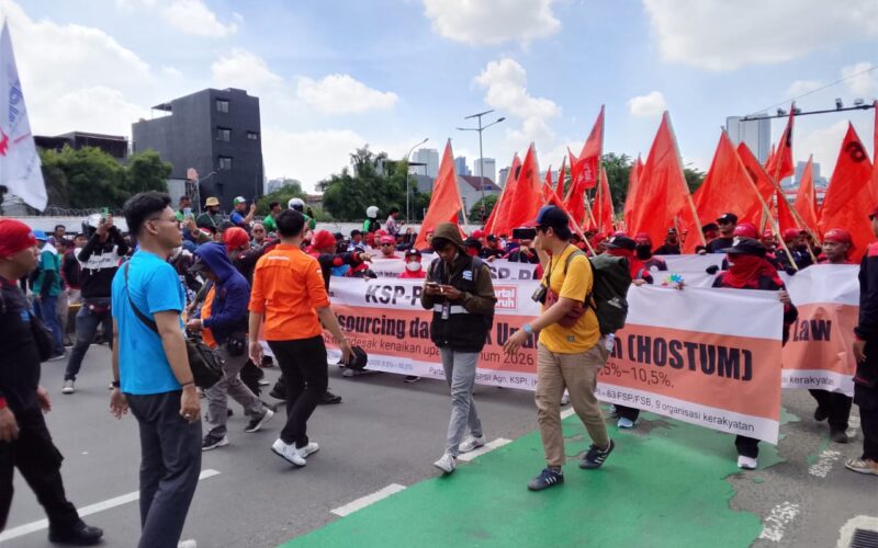 Jakarta vokalpublika.com – Sekitar 3.000 massa aksi Hapus Outsourcing Tolak Upah Murah (HOTSUM) mulai berkumpul di gerbang depan Gedung DPR RI. Mereka secara rapi berjalan dari Taman Ria menuju depan gerbang gedung DPR RI.