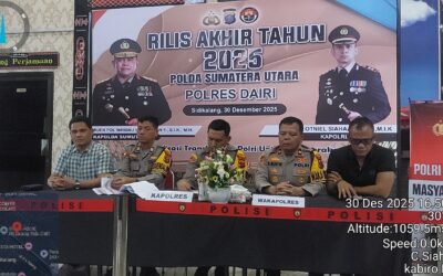 DAIRI/vokalpublika. comKepolisian Resor (Polres) Dairi menggelar konferensi pers refleksi akhir tahun 2025 sebagai bentuk evaluasi kinerja sekaligus penyampaian informasi kepada publik. Kegiatan ini berlangsung di Ruang Lobi Polres Dairi, Selasa (30/12/2025). Konferensi pers tersebut dipimpin langsung oleh Kapolres Dairi, AKBP Otniel Siahaan, didampingi Wakapolres Kompol Diarma Munthe, Kabag Ops AKP Luhut B. Sihombing, Kasat Reskrim …