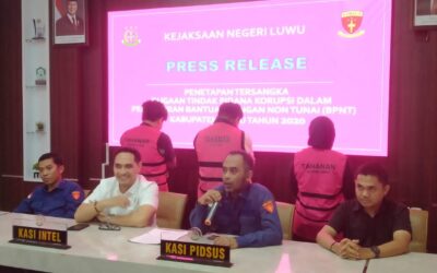 Luwu, vokalpublika.com – Kejaksaan Negeri (Kejari) Luwu resmi menetapkan tiga tersangka dalam perkara dugaan tindak pidana korupsi penyaluran Bantuan Pangan Non Tunai (BPNT) Kabupaten Luwu Tahun Anggaran 2020. Penetapan tersebut diumumkan dalam konferensi pers di Kantor Kejari Luwu, Jumat, 5 Desember 2025. Kepala Seksi Intelijen Kejari Luwu, Andi Ardiaman, mewakili Kepala Kejaksaan Negeri Luwu, menyampaikan …