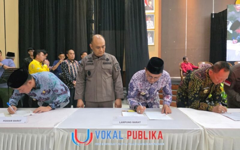 Lampung Barat, vokalpublika.com – Jajaran pemerintahan di Provinsi Lampung mencatatkan sejarah. Secara resmi para Bupati/Walikota menandatangani perjanjian kerja sama (MoU) dengan Kejaksaan Negeri (Kejari) se-Lampung, tidak terkecuali Bupati Lampung Barat Parosil Mabsus.