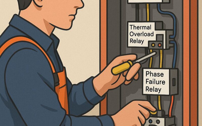 Rangkaian proteksi listrik tiga fasa merupakan sistem pengaman yang dirancang untuk melindungi instalasi dan peralatan listrik dari berbagai gangguan seperti hubungan pendek (korsleting), kelebihan beban (overload), ketidakseimbangan antar fasa, kehilangan salah satu fasa (phase loss), hingga tegangan yang terlalu tinggi atau terlalu rendah.