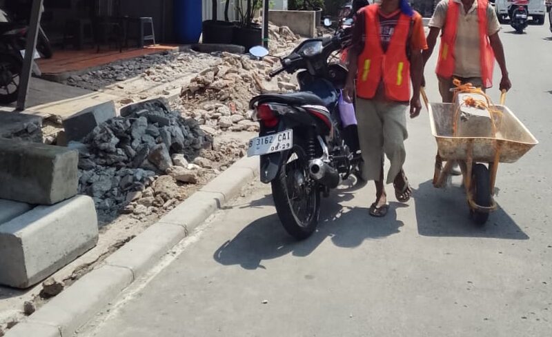 Pekerja Proyek Trotoar Borobudur Raya Tanpa Alat Safety Lengkap