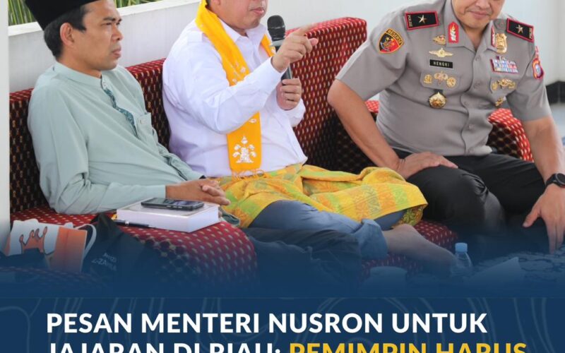 Menteri Agraria dan Tata Ruang/Kepala Badan Pertanahan Nasional, Nusron Wahid, menegaskan pentingnya kepemimpinan yang berorientasi pada kepentingan masyarakat dalam tubuh Kementerian Agraria dan Tata Ruang/Badan Pertanahan Nasional. Penegasan tersebut disampaikan saat kegiatan silaturahmi dan ceramah keagamaan bersama Ustaz Abdul Somad di Pondok Pesantren Ma’had Az-Zahra, Bangkinang, Rabu (22/4/2026).