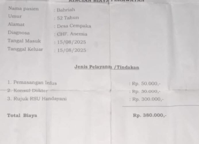 Lampung utara, vokalpublika.com – Sejumlah warga sungkai jaya keluhkan pelayanan puskes mas terkait pengurusan bpjs non aktif, pasien rawat inap di puskesmas cempaka kecamatan sungkai jaya. di rumah sakit biasanya di beri waktu untuk mengurus bpjs non aktif 3×24, sedangkan di puskesmas cempaka tidak berlaku, jika pasien masuk ugd di puskesmas cempaka bpjs nya non aktif tetap di kenakan tarif umum, walau hari ke dua bpjs nya dapat di aktifkan