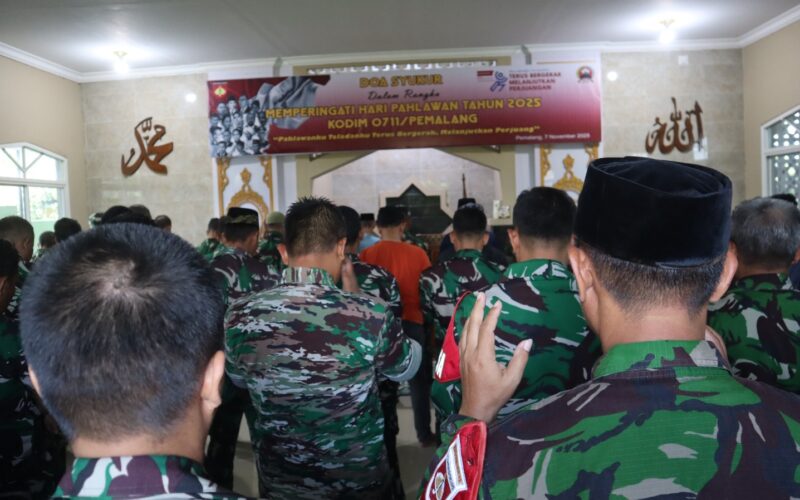 Pemalang, Vokalpublika.com – Dalam rangka memperingati Hari Pahlawan Tahun 2025, Kodim 0711/Pemalang menggelar kegiatan Do’a Syukur yang dilaksanakan seusai pelaksanaan Sholat Jumat berjamaah di Masjid Al-Ikhlas Kodim 0711/Pemalang, Jumat (7/11/2025).