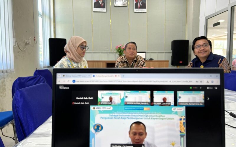 Sebagai bentuk komitmen dalam meningkatkan kapasitas dan pemahaman terkait hal tersebut, Kepala Kantor Pertanahan Kabupaten Dairi bersama jajaran mengikuti kegiatan penguatan penilaian dampak sosial secara daring melalui Zoom Meeting. Kegiatan ini diharapkan mampu mendukung pelaksanaan tugas di daerah, khususnya dalam menghadirkan pengadaan tanah yang lebih berkualitas dan berpihak kepada masyarakat.