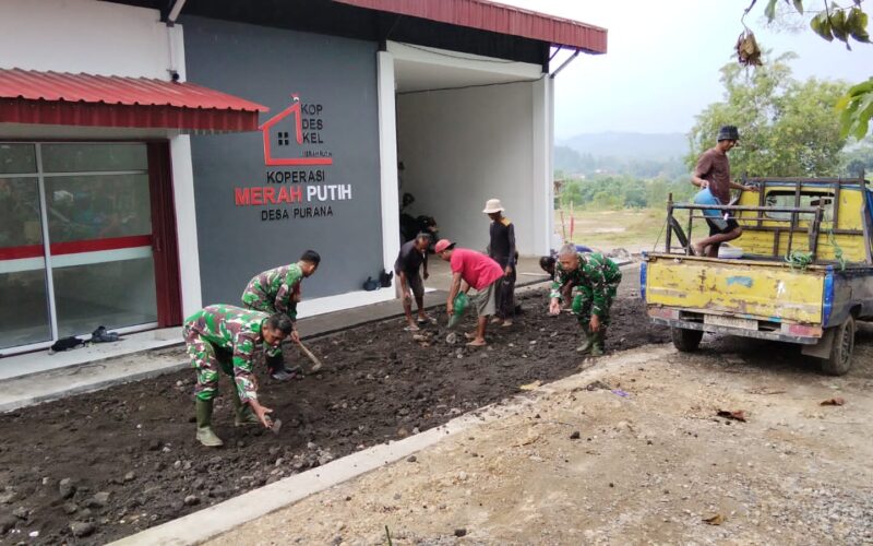 ”Kami bersinergi dengan warga untuk merapikan area KDKMP agar lebih representatif. Lokasi ini merupakan pusat ekonomi dan sosial, sehingga kenyamanannya menjadi prioritas,” ujar Serda Wuryanto di sela-sela kegiatan.