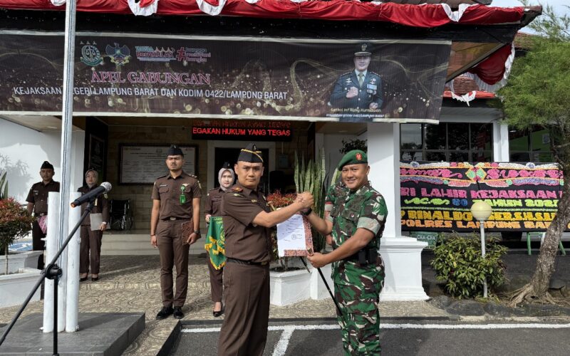 Lampung Barat, Vokalpublika.com – 3 September 2025 Kejaksaan Negeri Lampung Barat bersama Komando Distrik Militer (Kodim) 0422/Lampung Barat melaksanakan apel gabungan dalam rangka memperkuat sinergitas dan soliditas antar-aparat penegak hukum dan pertahanan di daerah.