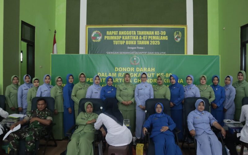 Pemalang, Vokalpublika.com – Dalam rangka memperingati Hari Ulang Tahun (HUT) ke-80 Persit Kartika Chandra Kirana (KCK) Tahun 2026, Persit KCK Cabang XXI Kodim 0711/Pemalang Koorcab Rem 071 PD IV/Diponegoro menggelar kegiatan bakti sosial donor darah, bertempat di Aula Oerip Soemohardjo Kodim 0711/Pemalang, Selasa (3/2/2026).