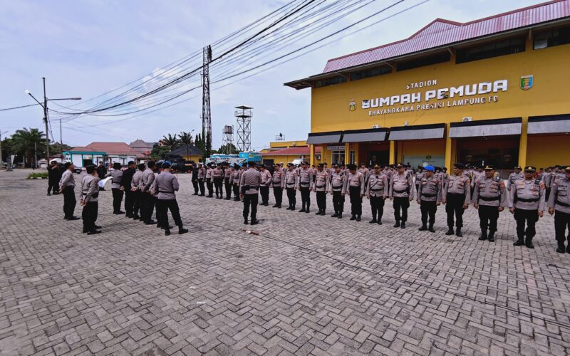 Lampung, vokalpublika.com— Personel gabungan Polda Lampung melaksanakan pengamanan dalam pertandingan lanjutan antara Bhayangkara Presisi Lampung FC melawan Persik Kediri yang digelar di Stadion Sumpah Pemuda, Bandar Lampung. Jumat(19/9/25)