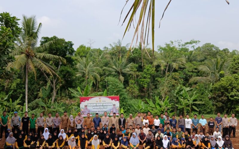 Serang, Vokalpublika.com – Polres Serang menggelar kegiatan penanaman jagung kuartal III di Pondok Pesantren (Ponpes) Modern Sohibul Muslimin, Kecamatan Tunjung Teja, Kabupaten Serang, Senin (11/8/2025). Kegiatan ini merupakan bagian dari program ketahanan pangan dan pemberdayaan masyarakat.