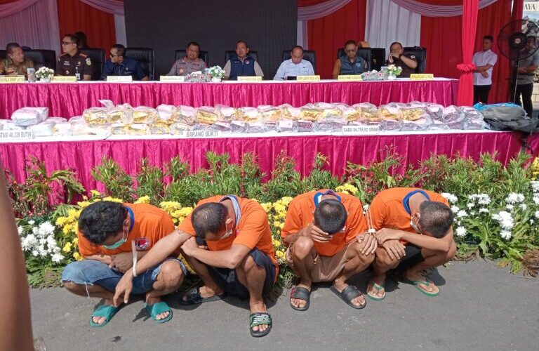 Kasus Kedua (17 Agustus 2025): Dua pelaku ditangkap dengan barang bukti 41 kantong plastik berlogo naga dan ikan koi berisi sabu seberat ±40,8 kg, sebuah mobil Toyota Calya berpelat palsu KB, tiga panel box, dan tiga buah tas.
