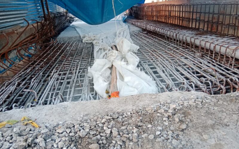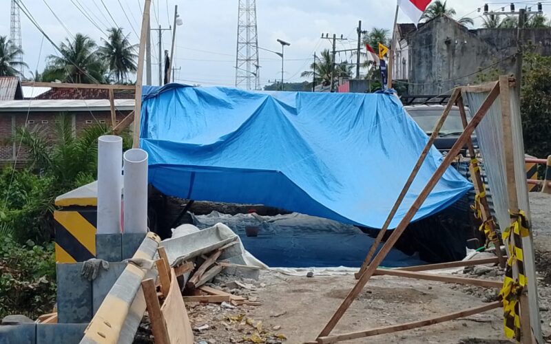 Terlihat progres pembangunannya acak-acakan. Pengecoran terputus belum diselesaikan dan diberhentikan dengan alasan masih kekurangan material.