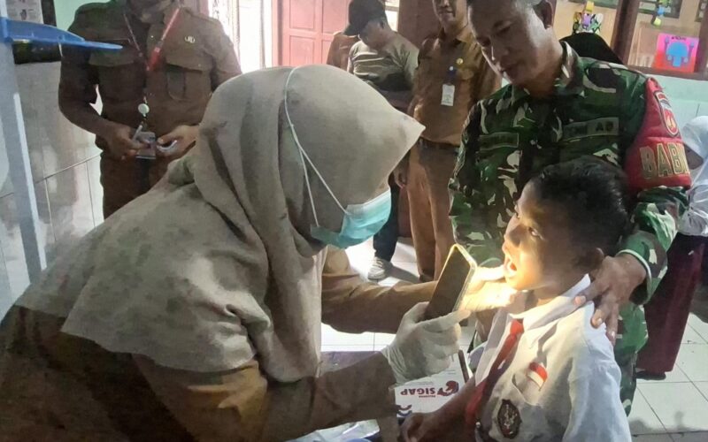 Brebes, Vokalpublika.com – Program TNI Manunggal Membangun Desa (TMMD) Reguler ke-127 Kodim 0713/Brebes memperluas cakupan kegiatannya pada sektor kesehatan masyarakat. Selain fokus pada infrastruktur, Satgas TMMD bersinergi dengan Dinas Kesehatan Kabupaten Brebes menggelar pemberian Topikal Aplikasi Flour (TAF) bagi siswa SD Negeri Cikuya 01, Rabu 25 Februari 2026.