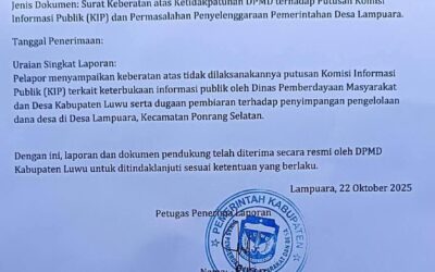 Luwu, VokalPublika.com — Ketidakpuasan masyarakat Desa Lampuara terhadap kinerja Dinas Pemberdayaan Masyarakat dan Desa (DPMD) Kabupaten Luwu kian memuncak. Setelah putusan Komisi Informasi dan rekomendasi resmi DPRD Kabupaten Luwu tak diindahkan, masyarakat yang tergabung dalam Aliansi Masyarakat Lampuara Menggugat (AMLM) menyatakan akan menempuh jalur hukum melalui Pengadilan Tata Usaha Negara (PTUN). Sebelumnya, Komisi Informasi Provinsi …