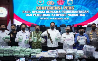 Jakarta, vokalpublika. Com —Gerakan nasional pemberantasan narkoba kembali menunjukkan hasil nyata. Dalam operasi besar bertajuk Operasi Bersama Pemberantasan dan Pemulihan Kampung Narkoba yang digelar serentak pada 5–7 November 2025, Badan Narkotika Nasional (BNN) bersama Polri, TNI, dan pemerintah daerah berhasil mengungkap jaringan peredaran narkoba di 53 titik di 34 provinsi seluruh Indonesia. Hasilnya, 1.259 orang …