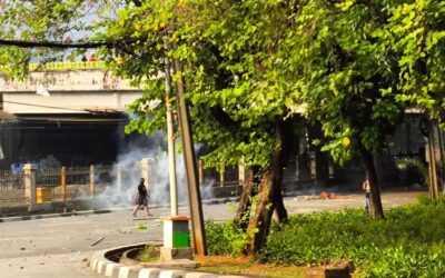 Jakarta, vokalpublika.com – Aksi masyarakat dan mahasiswa di depan Gedung DPR RI berlangsung Keos, aparat memukul mundur massa aksi ke Taman Ria. Sepanjang 200 meter pembatas jalan Trans Jakarta menjadi obyek pengrusakan. Massa yang marah, karena disemprotkan air dari water Canon, marah dengan melempari aparat dengan batu serta bambu. Bentrok massa dengan aparat juga terjadi …