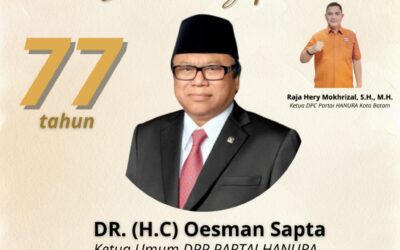 Batam, vokalpublika.com – Ketua Dewan Pimpinan Cabang (DPC) Partai Hati Nurani Rakyat (HANURA) Kota Batam, Raja Hery Mokhrizal, S.H., M.H., menyampaikan ucapan selamat ulang tahun ke-77 kepada Ketua Umum Dewan Pimpinan Pusat (DPP) Partai HANURA, DR. (H.C.) Oesman Sapta. Dalam pernyataannya, Raja Hery Mokhrizal menyebutkan bahwa momentum ulang tahun ini menjadi doa bersama seluruh kader …