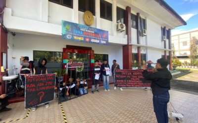 Palopo, vokalpublika.com — Puluhan mahasiswa yang tergabung dalam Aliansi Mahasiswa dan Masyarakat untuk Keadilan menggelar aksi teatrikal di depan Kantor Pengadilan Negeri (PN) Palopo, Selasa (11/11/2025). Aksi tersebut menggambarkan tiga orang terdakwa yang dipenjara akibat dugaan abuse of power oleh oknum penyidik kepolisian dan jaksa di PN Palopo yang dinilai mengabaikan bukti ketidakbersalahan para terdakwa. …